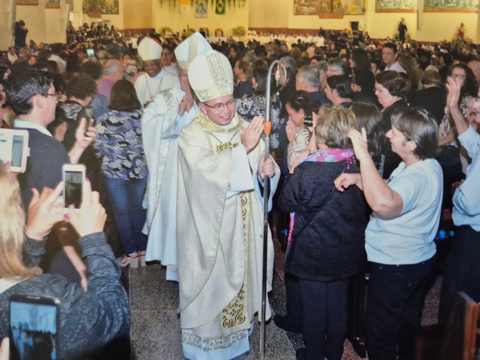 Após a ordenação Dom Amilton Manoel da Silva, percorreu por toda a igreja, onde abençoou e recebeu a saudação de todos fiéis presentes.