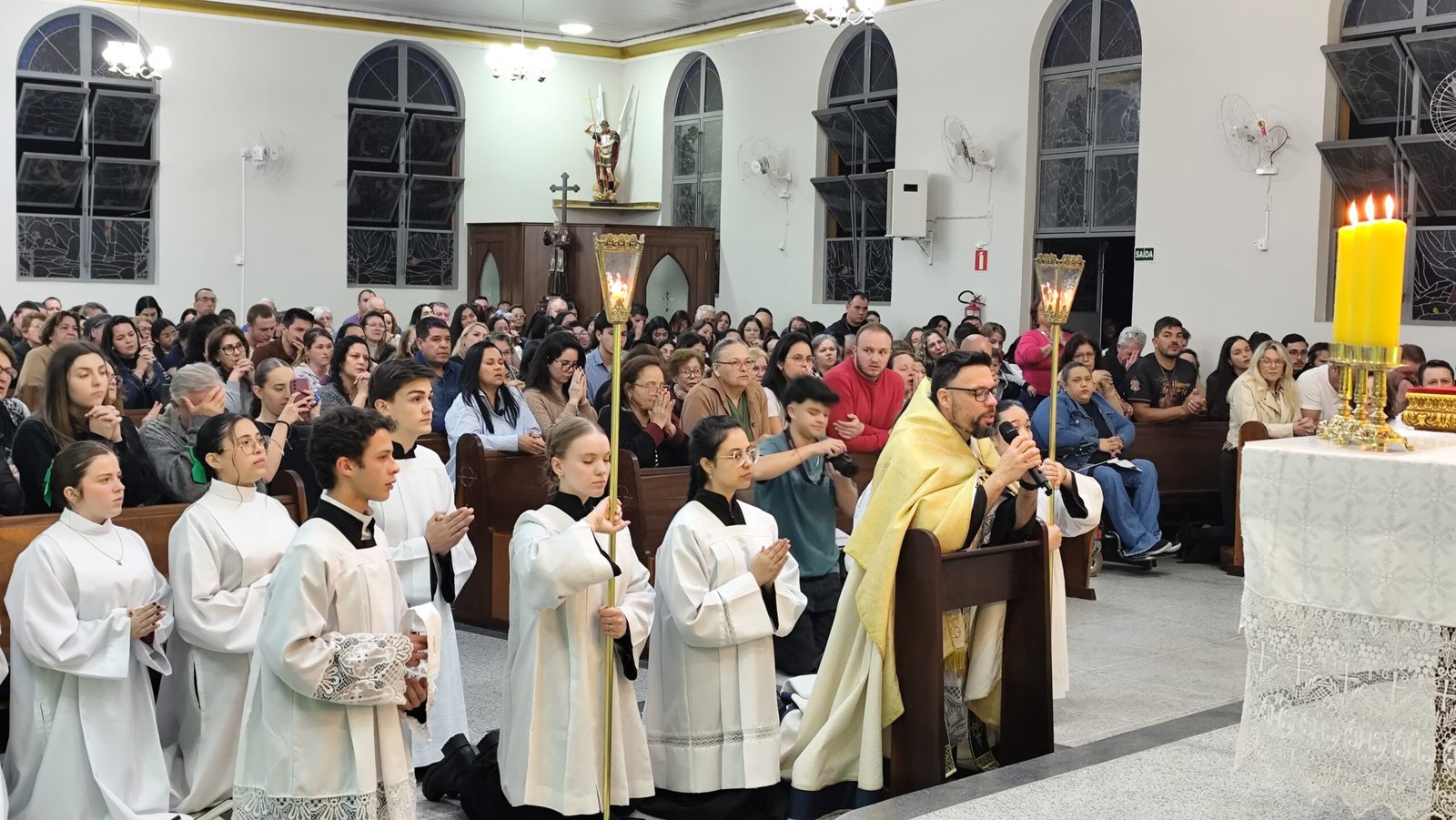 Ainda no domingo, aconteceu a abertura do Cerco de Jericó, celebrada com grande fervor pela comunidade. A Santa Missa foi presidida pelo padre Jean Patrik, vocação oriunda da própria paróquia, e reuniu um expressivo número de fiéis. Tanto o interior da igreja quanto a tenda externa — onde foi instalado um telão para transmissão da celebração — ficaram lotados.