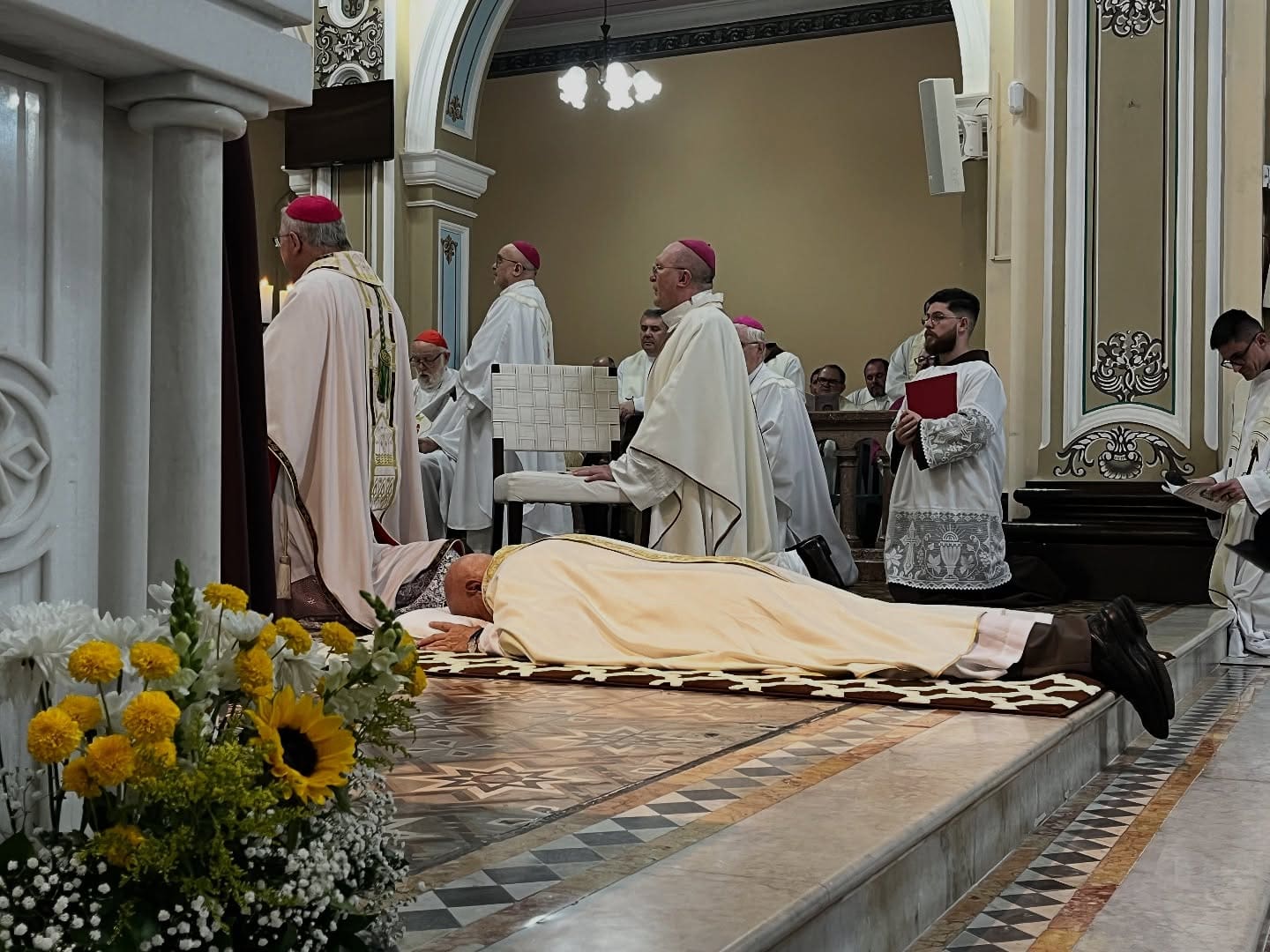 Após a homilia, teve início o rito de ordenação episcopal. Frei Pedro foi interrogado sobre sua fidelidade à fé e à missão da Igreja, e logo depois prostrou-se diante do altar, enquanto a assembleia entoava a Ladainha de Todos os Santos.