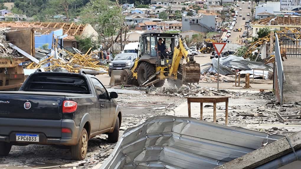 Na paróquia, o padre Cristian Jardim, juntamente com os crismandos, familiares e fiéis, aguardava a chegada do bispo quando o vento forte começou a arrancar parte do telhado da igreja e destruiu o salão paroquial. As portas foram fechadas, e a comunidade se reuniu em oração, permanecendo em segurança até que os ventos diminuiram de intensidade.