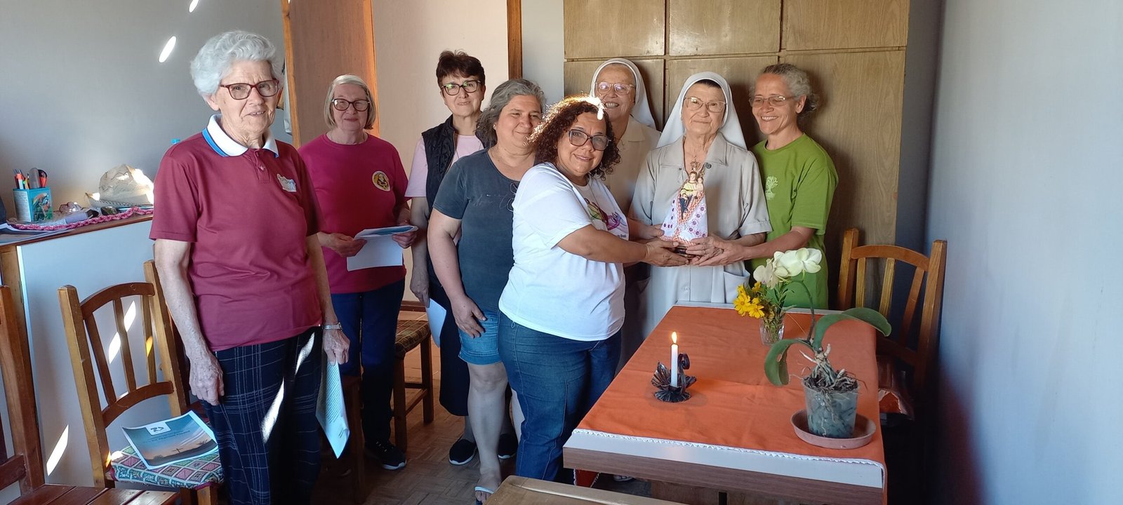Segundo a irmã Clotilde Bomfim, “estávamos reunidas em quatro congregações religiosas, junto a algumas leigas que partilham o carisma e também com um grupo de pessoas que está ajudando na reconstrução da casa das irmãs. Foi um momento de oração e de esperança no meio do caos”.