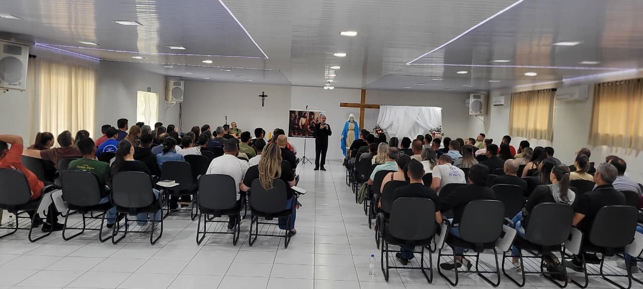 A Pastoral Familiar do Decanato Centro promoveu, entre os dias 21 e 23 de novembro, um intenso e frutuoso retiro para casais na Casa de Formação Nossa Senhora de Guadalupe, conhecida casa de líderes da Diocese de Guarapuava. O encontro reuniu 45 casais, número que corresponde à lotação total do espaço, evidenciando a grande adesão e o interesse das famílias em fortalecer a espiritualidade e o vínculo conjugal.