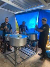Segundo ele, desde o início a prioridade foi atender sobretudo quem está trabalhando na linha de frente da reconstrução. “A nossa ideia, desde o dia que a gente foi, era fazer para o pessoal de trabalho, para os voluntários. Às vezes o pessoal leva muita cesta básica, muita coisa, e esquece que eles precisam comer na hora. Então a ideia era servir a população, mas focar na equipe de trabalho: polícia, bombeiros, defesa civil, voluntários, pedreiros, gente que vem de outras cidades — tem gente do Brasil inteiro lá”, afirma.