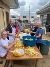 O movimento iniciou a arrecadação ainda na manhã de sábado. A estrutura para cozinhar foi cedida pelo pároco de Rio Bonito do Iguaçu, padre Christian, que liberou a cozinha da igreja para o trabalho inicial. “A gente começou usando a cozinha da paróquia. O padre liberou fogão, equipamentos. Levamos só os insumos e o gás”, explica.