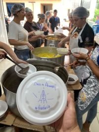 Acácio Marcondes, integrante do movimento, explica que a iniciativa reúne entre cinco e seis membros fixos na cozinha, além de voluntários da Paróquia Santo Antônio de Pádua e das equipes responsáveis pela entrega das refeições. “Normalmente, por refeição, são 30 ou 40 pessoas envolvidas. São, em média, 700 marmitas por dia servidas”, detalha.