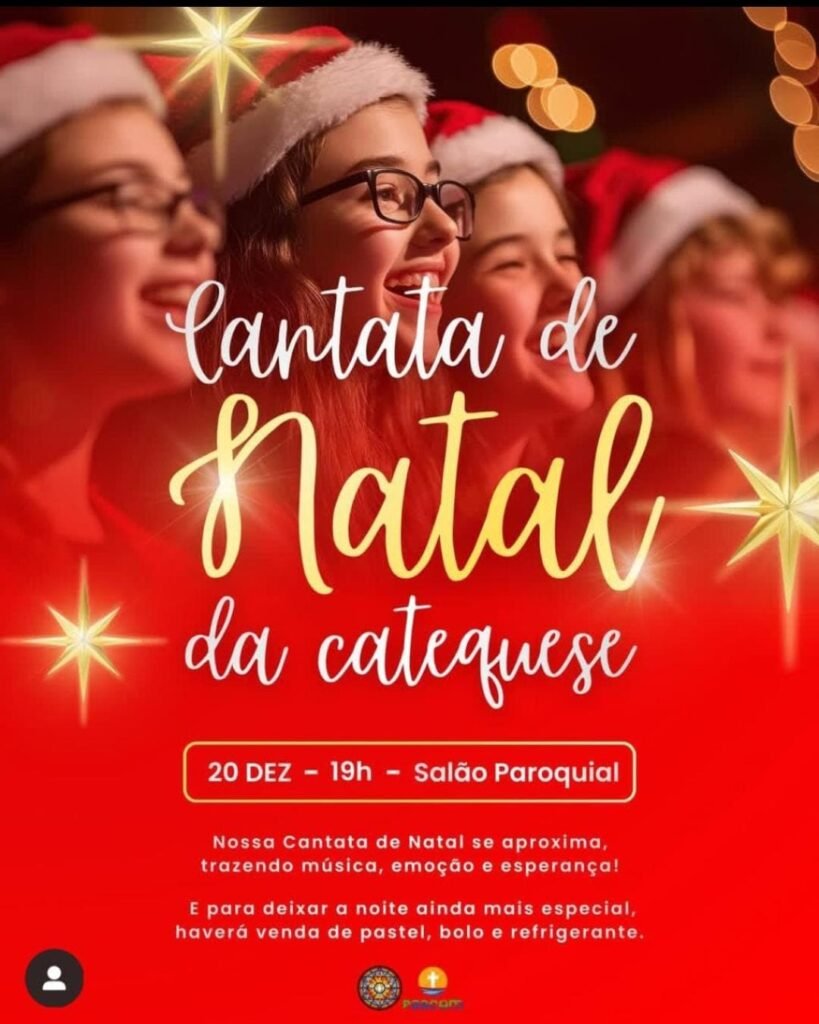 A apresentação acontece às 19h, no salão paroquial, e contará com a participação das crianças da catequese, que irão encantar o público com cantos e a apresentação da História do Menino Jesus, ajudando a preparar os corações para a celebração do Natal.