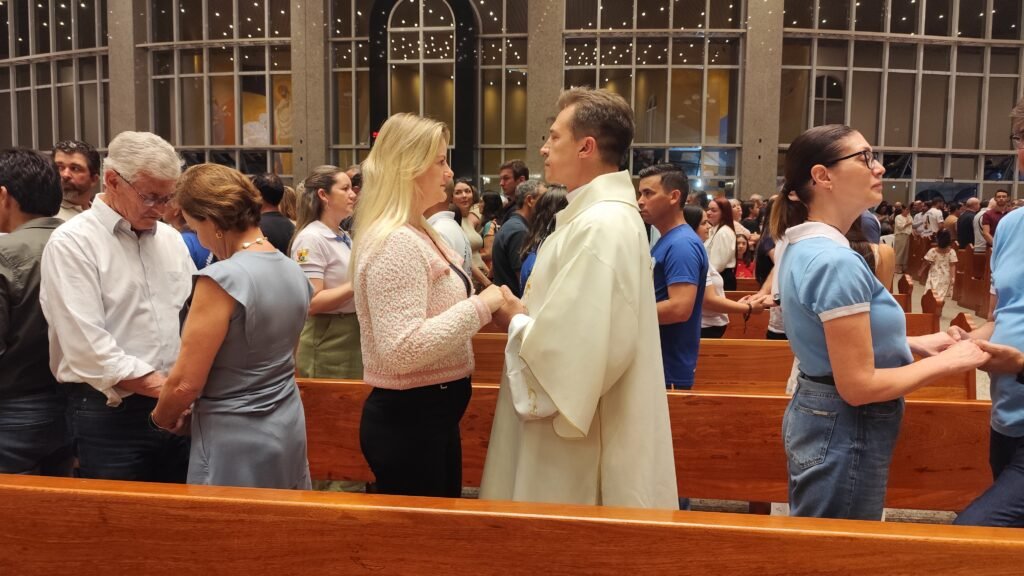 Durante a celebração, os casais renovaram os compromissos matrimoniais e receberam a bênção das alianças. Casais em nova união também foram acolhidos com uma bênção especial, assim como aqueles que celebraram Bodas de Prata, Bodas de Ouro ou mais anos de matrimônio, em um momento marcado por profunda emoção, fé e gratidão.