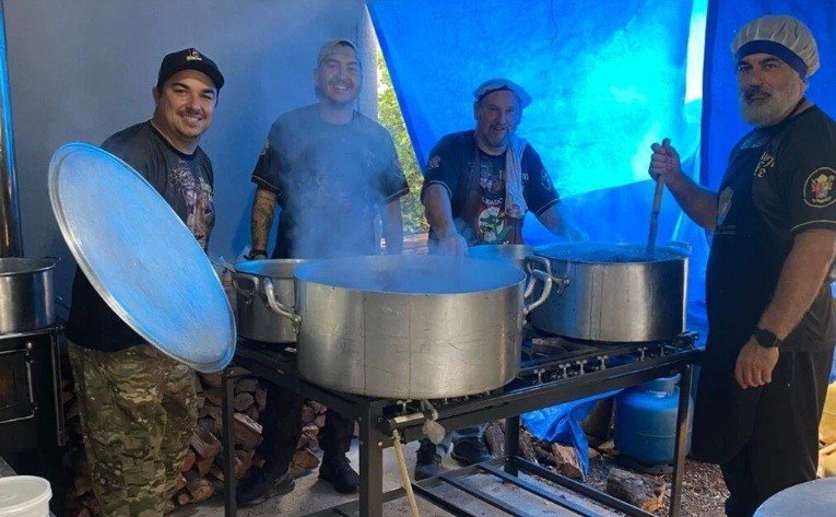 “Homens de Fé” servem marmitas aos voluntários da reconstrução em Rio Bonito do Iguaçu