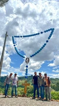 A construção do terço suspenso, conforme explicou Sandro Cardozo, exigiu criatividade e esforço coletivo. “Foi um pouco trabalhoso, porque não tínhamos um modelo pronto. Precisamos adaptar as contas, os tamanhos dos cabos de aço e toda a estrutura. Conseguimos doações do proprietário do terreno, dos postes e hastes, além da mão de obra voluntária e recursos arrecadados em campanha. Vamos instalar uma placa com o nome dos doadores. O terço conta ainda com iluminação em LED, que à noite fica muito bonito. É realmente uma conquista de todos nós”, concluiu.