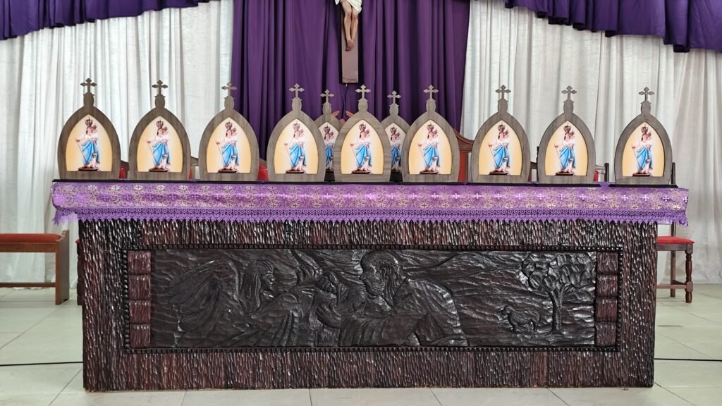 O retiro foi encerrado com a Santa Missa. Antes da celebração final, cada paróquia do Decanato recebeu uma capelinha com a imagem de Nossa Senhora de Belém. Em breve, todas as capelas também receberão esse símbolo da caminhada diocesana em 2026. Nos anos anteriores, a Diocese contou com outros sinais concretos: em 2025, a cruz jubilar; e, em 2024, a vela, recordando a luz da fé que ilumina a história.