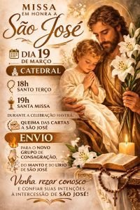 No próximo dia 19 de março, quando a Igreja celebra solenemente São José, a Catedral Nossa Senhora de Belém, em Guarapuava, vai acolher um momento de profunda fé e devoção. A programação pretende reunir fiéis para uma noite marcada pela oração, confiança e entrega de intenções à intercessão do patrono da Igreja.