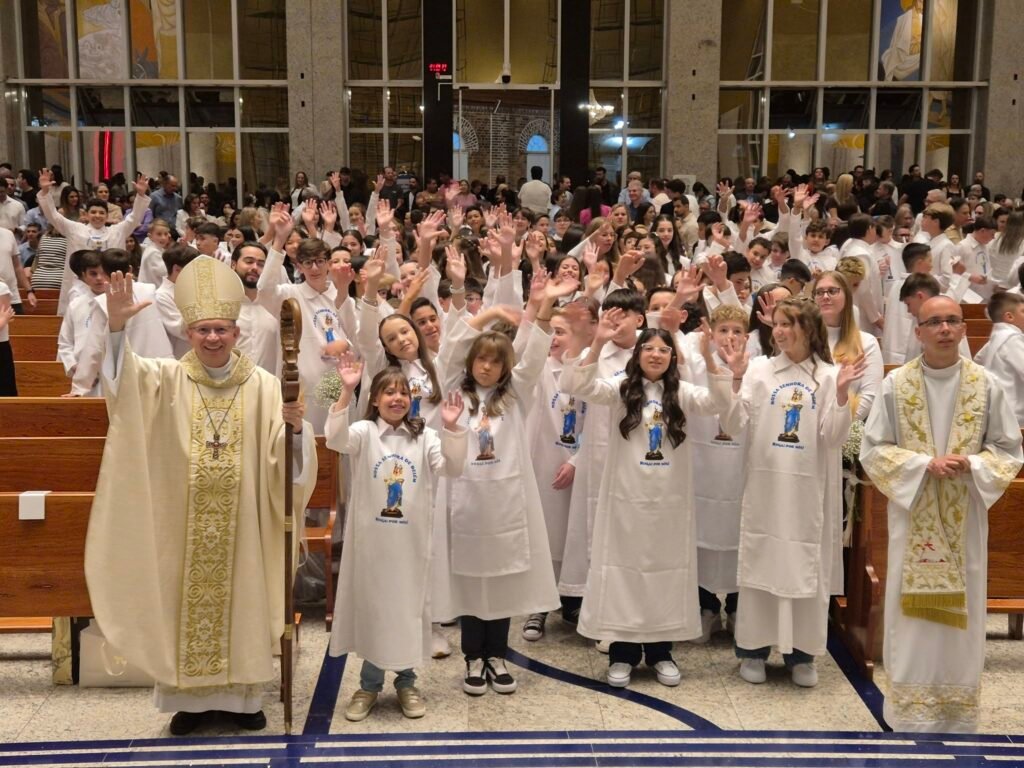 Na sexta-feira, 11 de abril, o bispo presidiu a Santa Missa com a Primeira Eucaristia de 124 crianças na Catedral Nossa Senhora de Belém. Em suas redes sociais, Dom Amilton destacou a importância do momento e agradeceu aos envolvidos na caminhada catequética. “Gratidão aos catequistas pela dedicação e organização deste momento tão significativo para as crianças, seus familiares e toda a Igreja. Deo Gratias!”, escreveu.