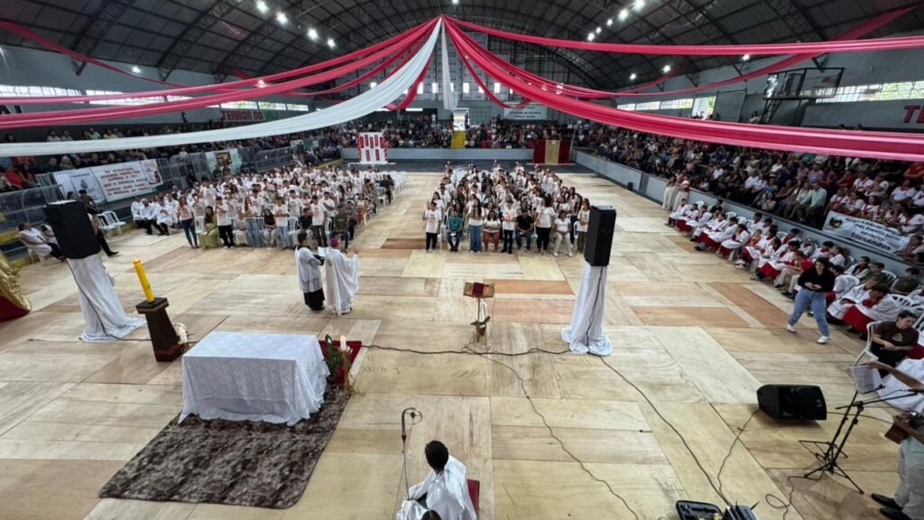 A Paróquia Senhor Bom Jesus, em Cândido de Abreu, na região norte da Diocese de Guarapuava, viveu um momento marcante de fé neste domingo, 26 de abril. Aproximadamente 100 jovens e adultos receberam o Sacramento da Crisma durante a Santa Missa presidida pelo bispo diocesano, Dom Amilton Manoel da Silva. A celebração aconteceu no ginásio de esportes do município e reuniu um grande número de fiéis, expressando a unidade e a vitalidade da comunidade.